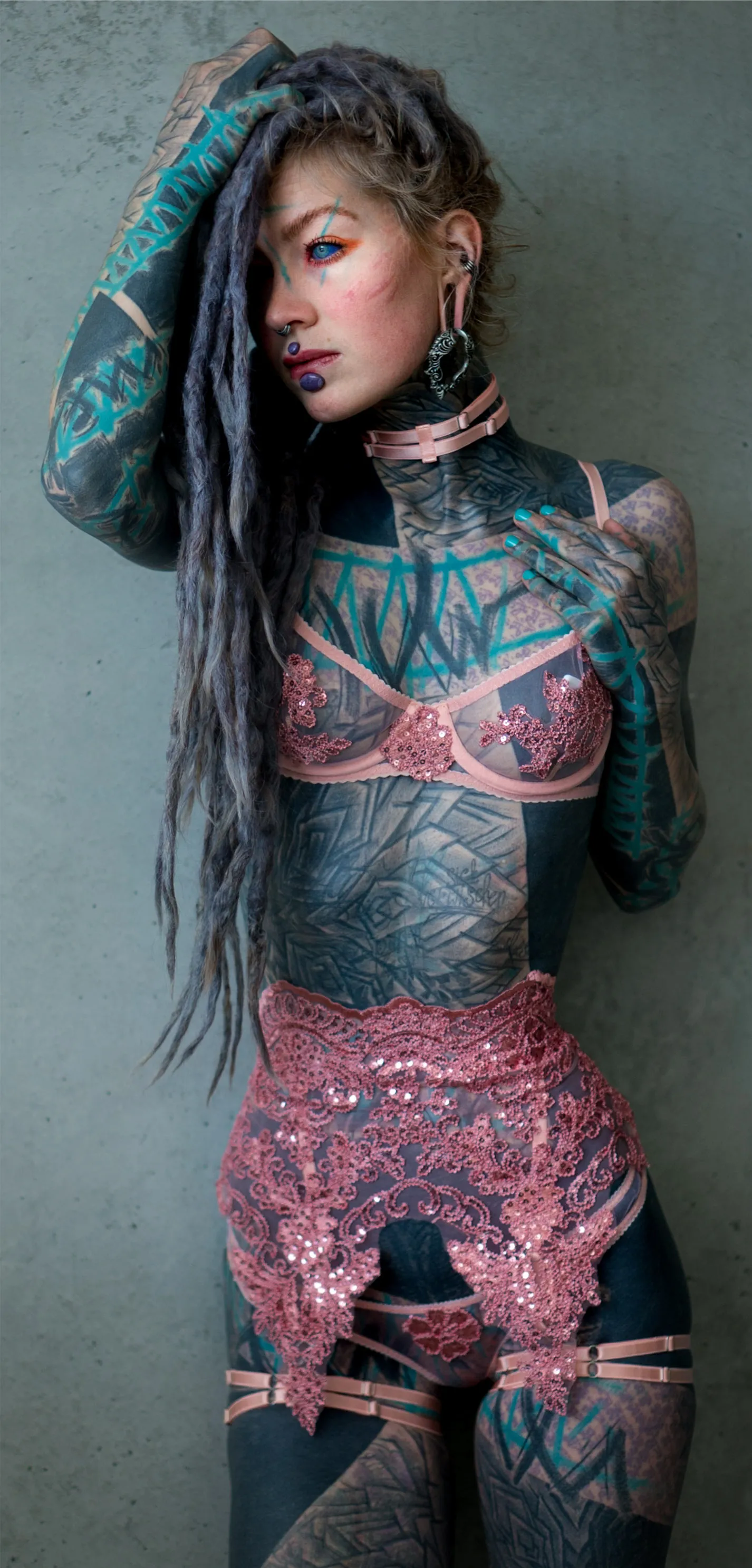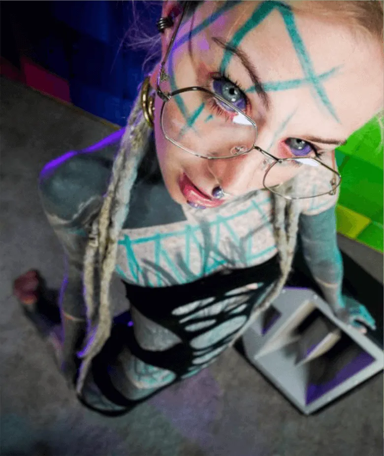 Ich bin begeistert von Anuskatzz und der Art und Weise, wie sie die Messlatte für Alternative höher legt. Sie ist eine Quintuple-Drohne, cammt, modelt, dominiert, produziert Inhalte, die auf erotischen Filmfestivals gezeigt werden, und nimmt an den extremsten erotischen Live-Shows des Planeten teil. Sie sieht ihre Arbeit irgendwo zwischen „psychedelischer Kunst und Pornografie“. Von der Art, wie sich ihre Tinte künstlerisch über ihren Körper erstreckt, bis zu ihren großen Dreads hat Anuskatzz einen wunderschönen Stil. Sie ist nicht nur ein Pinup, sondern ein echtes Lifestyle-Girl, das bereit ist, Extreme zu erkunden, wo andere Angst haben zu treten. (ALTSTAR MAGAZIN 2019)